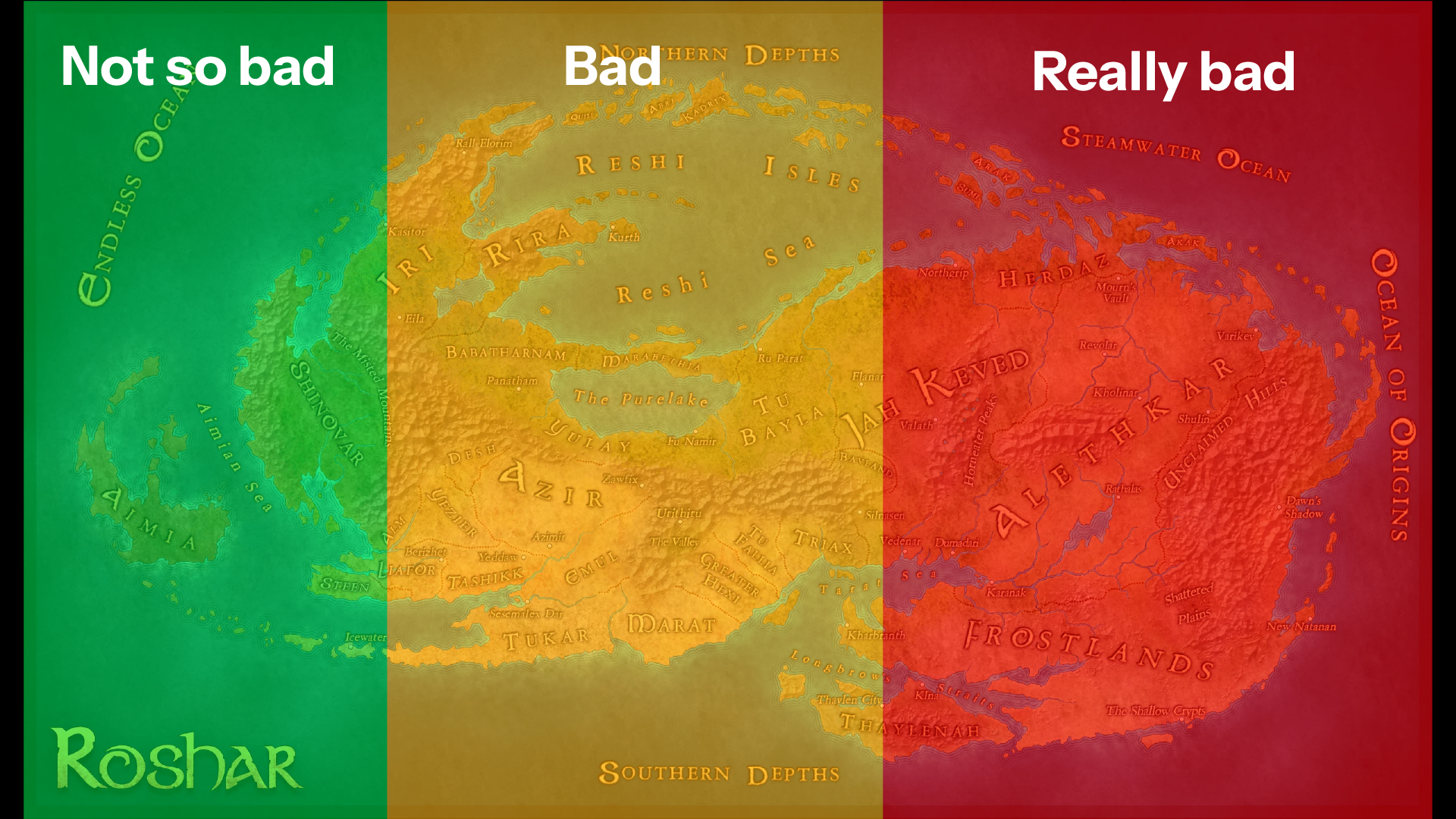 - Alethkar and the Frostlands will be hit the hardest, as they are the first areas to be hit and feature vast open plains.