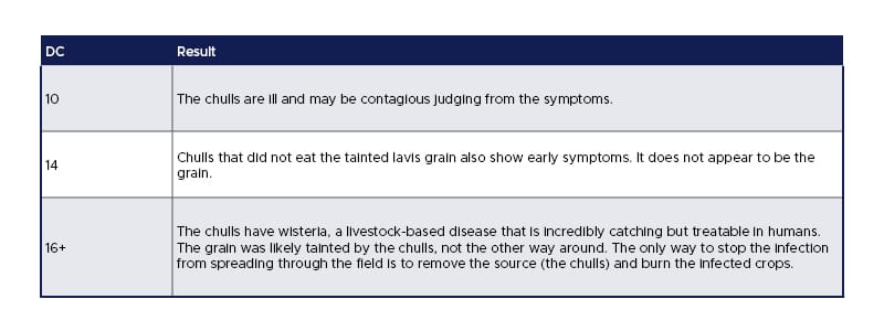 The party finds themselves among a small farming community overwhelmed by an infectious plague. An unknown disease has infected the community’s lavis harvest, causing widespread crop failure. If the issue is not addressed soon, the towns will not have enough resources to support themselves, let alone meet the demands of the local high prince.