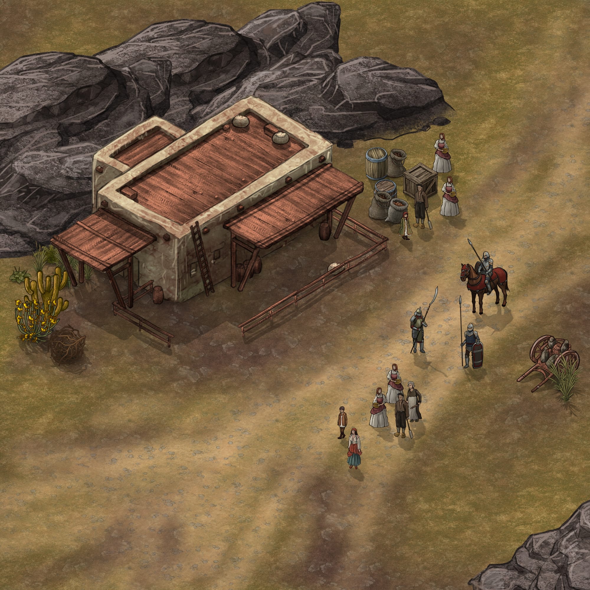 While traveling between two major cities, the party encounters a toll station set up by the local High Prince. The guards of this particular stop appear to be taking advantage of the would-be travelers across this stretch of the country, charging an absurd rate of a garnet mark (5mk) per individual looking to pass on. Those who cannot pay this egregious sum have their goods confiscated in exchange for passage.