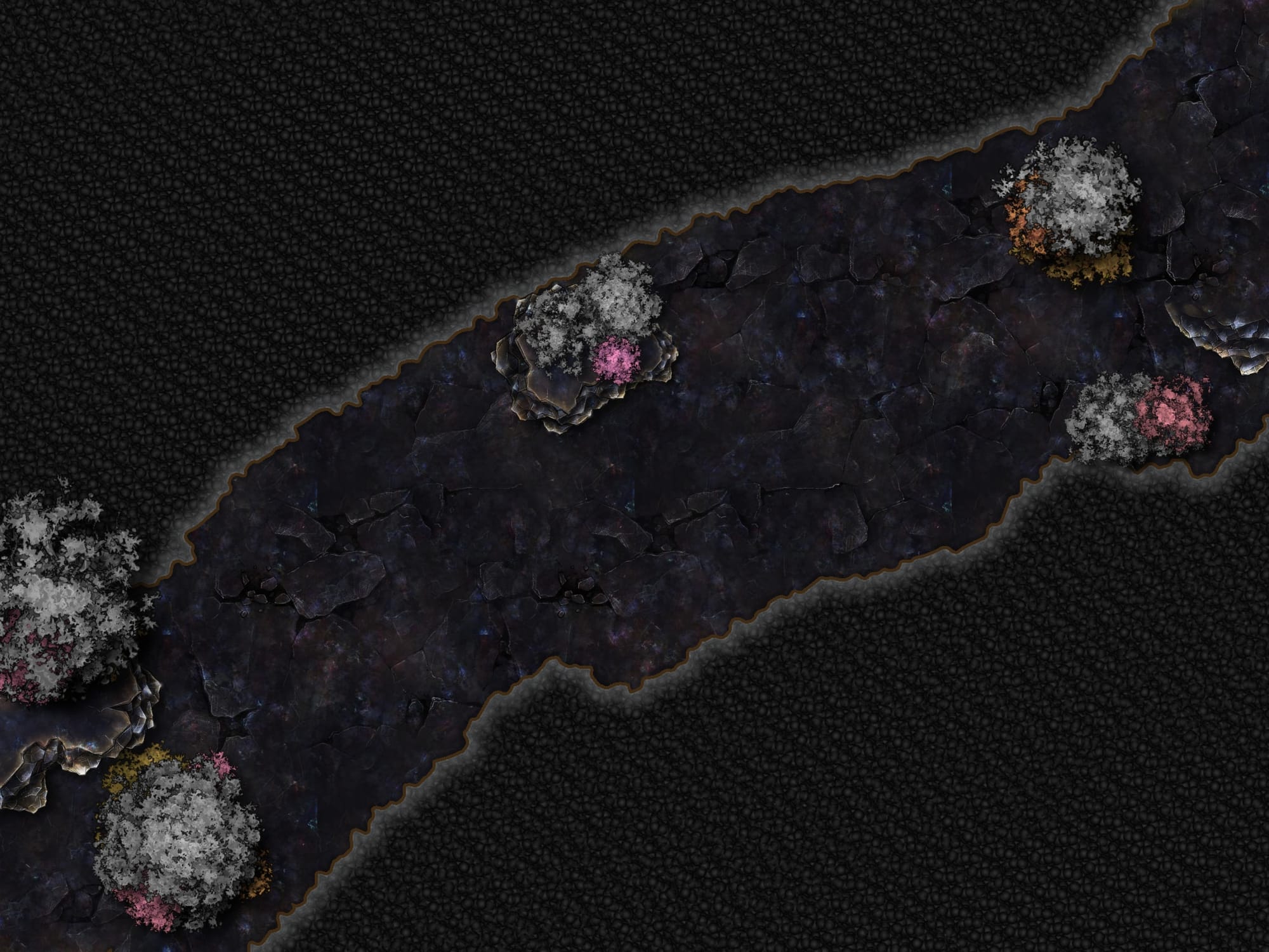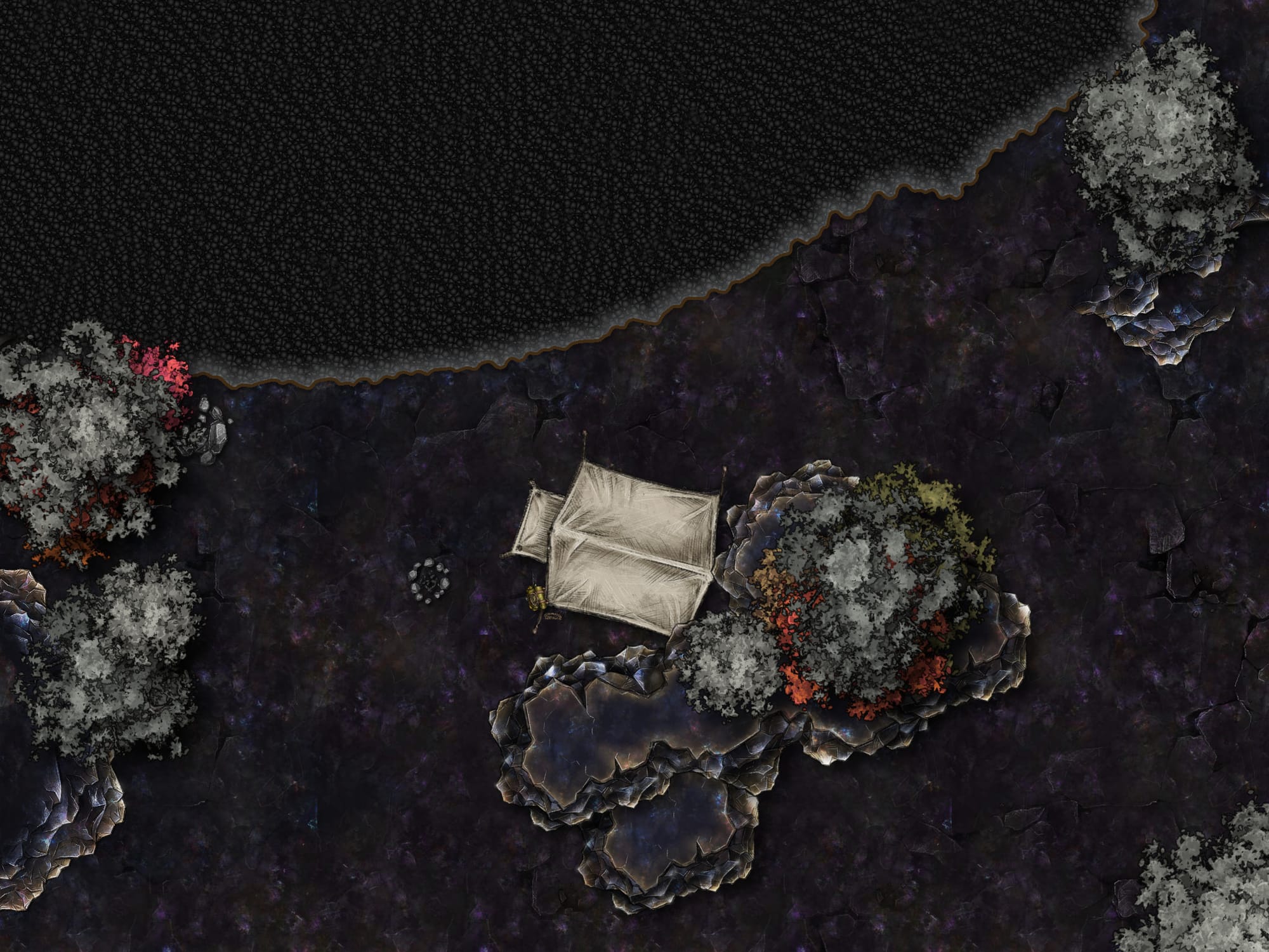 I wanted to capture the parts of Shadesmar that make it an interesting setting for battlemap: the iridescent obsidian, alien fauna, and bead ocean are all on full display in this maps.