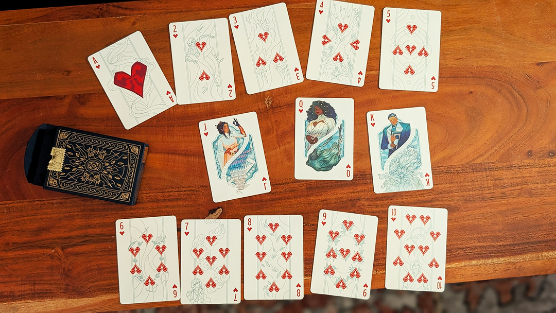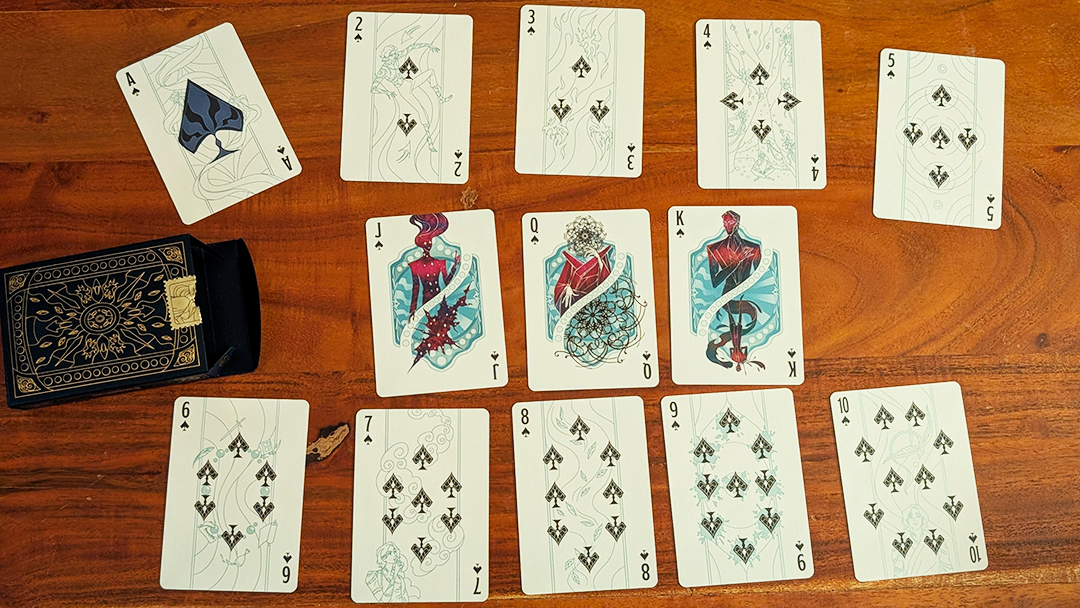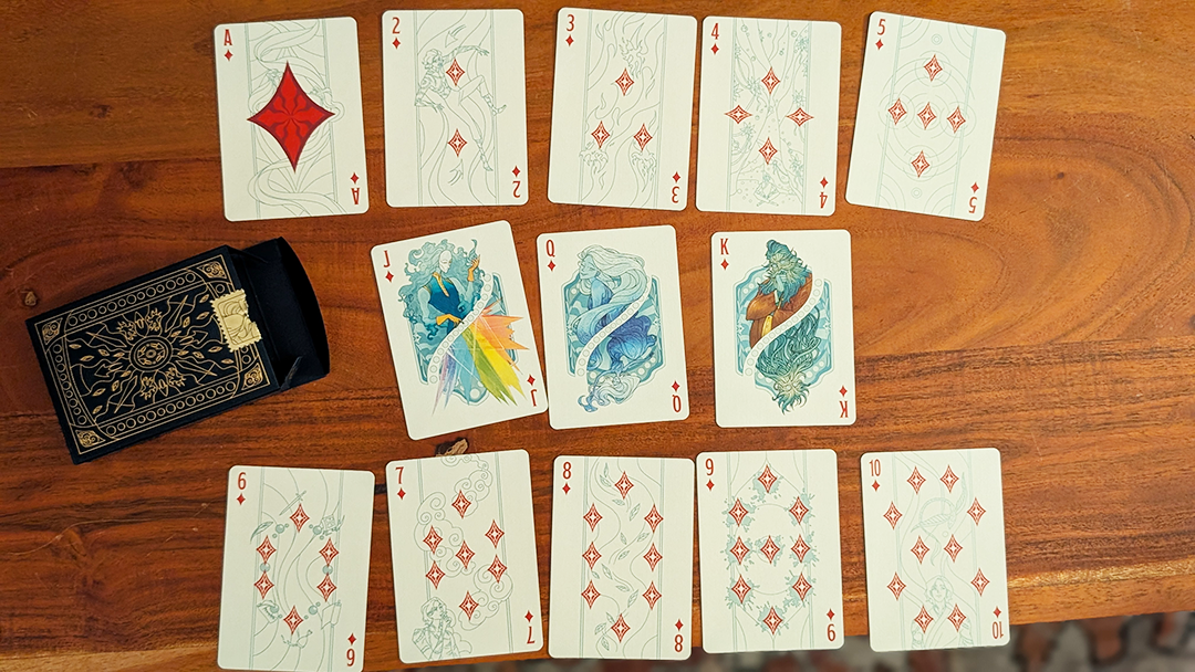 Each suit of cards comes a unique set of artwork for the face cards, and common artwork for the ranks.