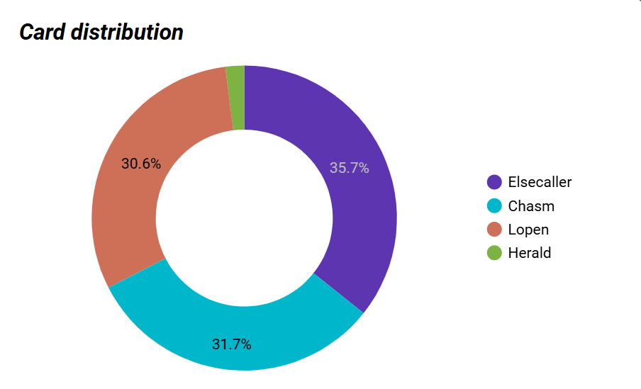 The card set I opened the most was Elsecaller, at a total of 180 / 504 total cards opened. This does not include Nonsense cards, which I have omitted due to their unusual nature.