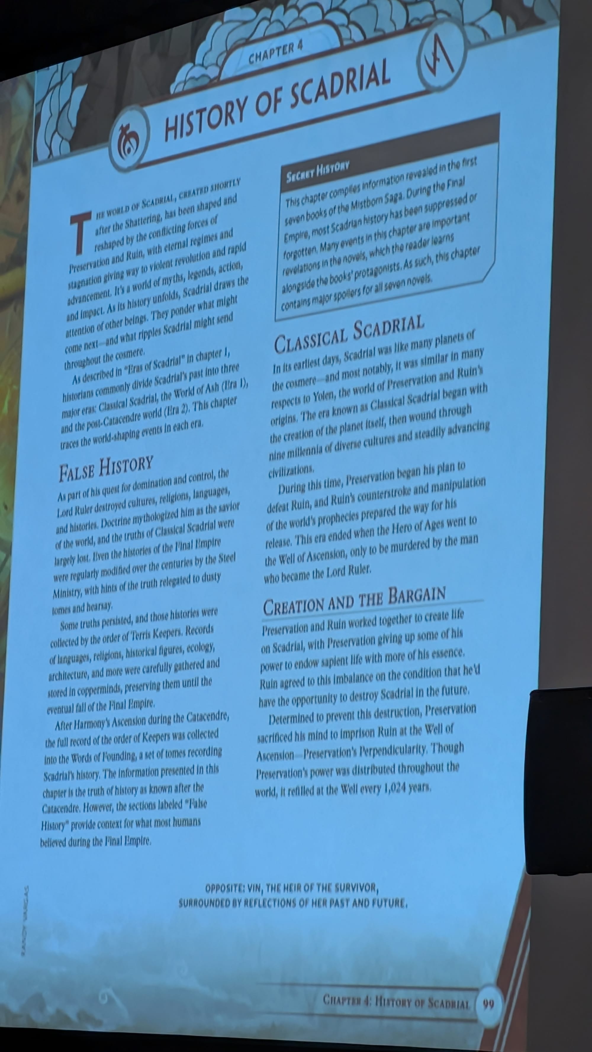 The world guide takes on the role of the "True History" of Scadrial, meaning that it will be ripe with spoilers for both Eras. Similar to the Stormlight World Guide, the Mistborn setting will have expanded lore in places that the books didn't cover in depth.