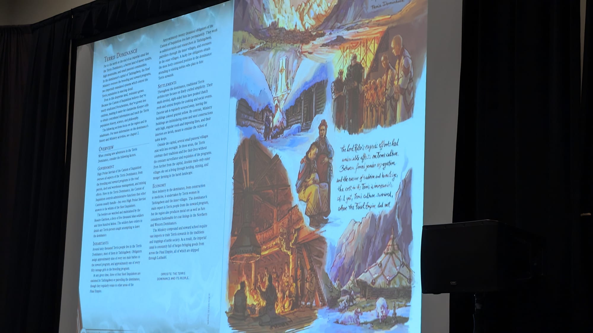 We got updates on some of the adventure we'll be playing through: we'll be learning about something called the "Eternity Spike" and meeting a group called the "Gilded Few". The main antagonists feature some familiar names, like Tekiel and Elariel, along with some faces like Bayron Conrad.