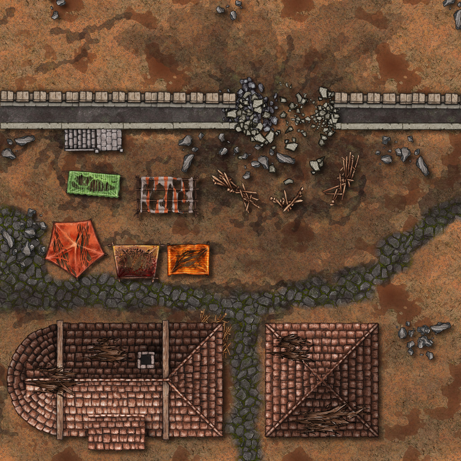 The party is attempting to flee the city during an active siege. They arrive at the city wall which has been breached by the invading force. This provides the party the opportunity to assist in the defense of the city, or a means to slip out past the wall without having to go through a gate.