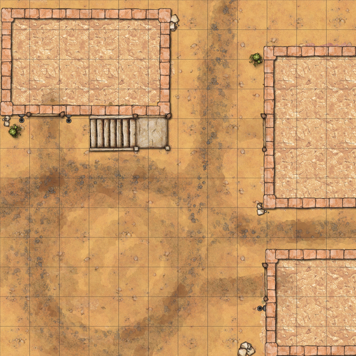 No grid versions for VTT and print are available. I also included a version of the map with the marketplace taken down, you know, in case there is a storm.