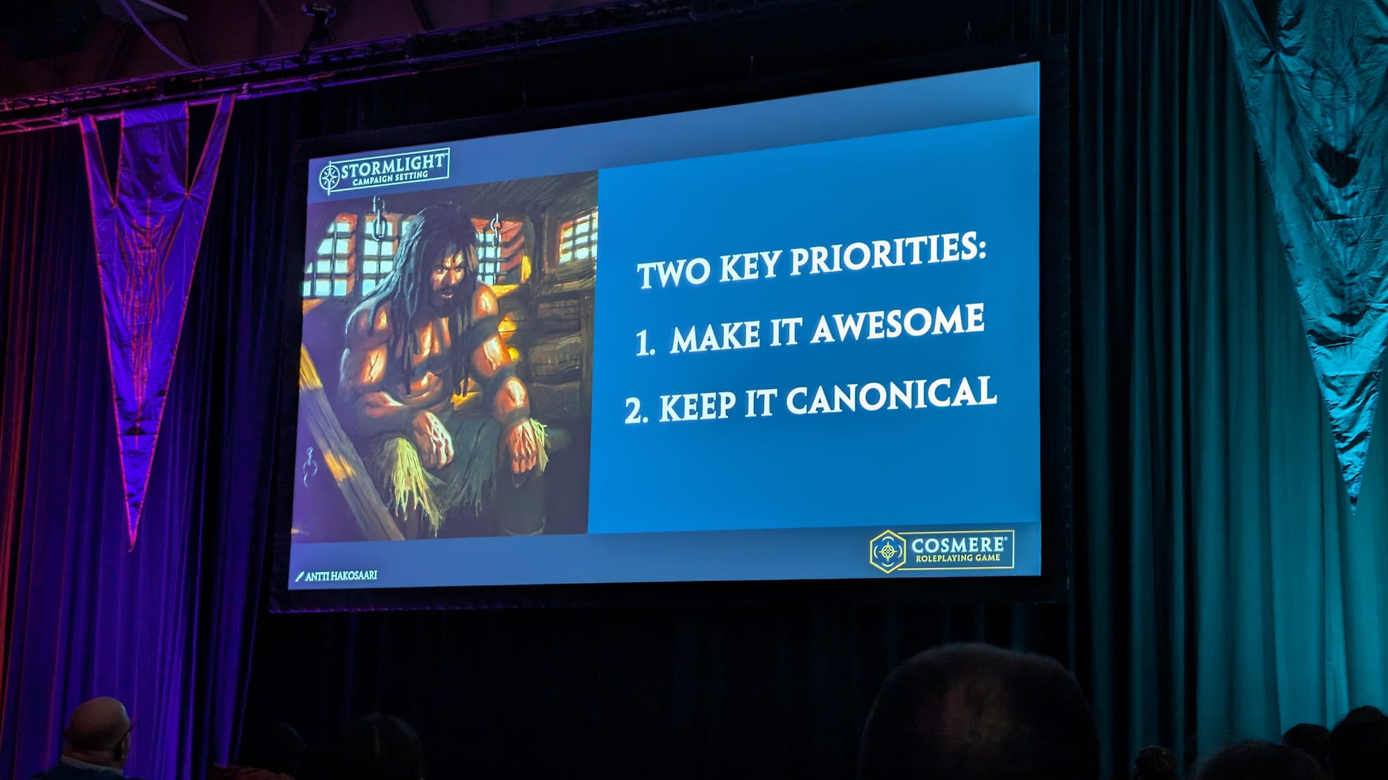 The panel talked a bit about the creative process working with Dragonsteel and the creative team at Brotherwise, developing out canon artwork for the Cosmere. The team is putting a lot of love in to the design and I can't wait to see the completed product.