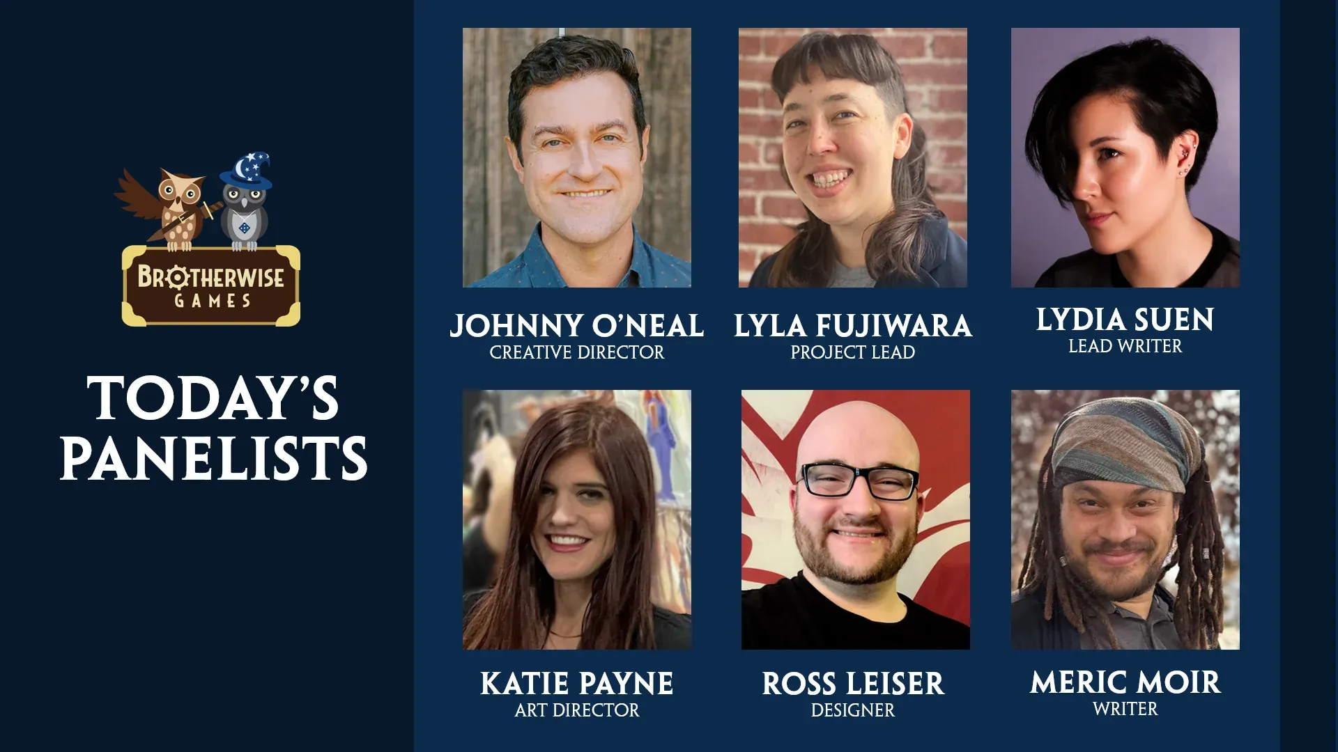 The panel was led by Johnny O’neal, the president and co-founder of Brotherwise. Unfortunately, I missed the slide with the introductions for each and it's not listed online. Most were on the creative side for either design or writing, with others representing the system design. Unfortunately, a combination of LinkedIn and the registration page on Tabletop wasn’t enough for me to bridge the gap.